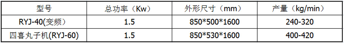 产品规格:RYJ-40(变频)/四喜丸子机(RYJ-60)双变频调节好处:变频调节可以使设备准确的用数字控制丸子机的速度与频率,在工人们每班交接时只需要交接好变频器中的数字或者设备设定好数字即可,这样生产出来的丸子直径基本没有误差,保证了丸子的大小一致。